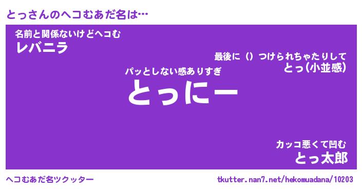 | ポケモン風あだ名 | 『トッチュウ』『トッダネ』『ヒトッ』 |