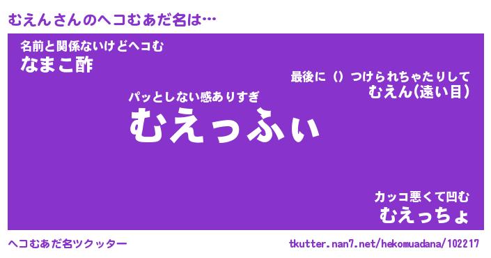 | 意味不明あだ名 | 『ペロリンむえん』『むえんフォーエバー』 |