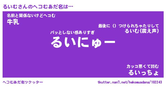 | 意味不明あだ名 | 『ペロリンるいむ』『るいむフォーエバー』 |