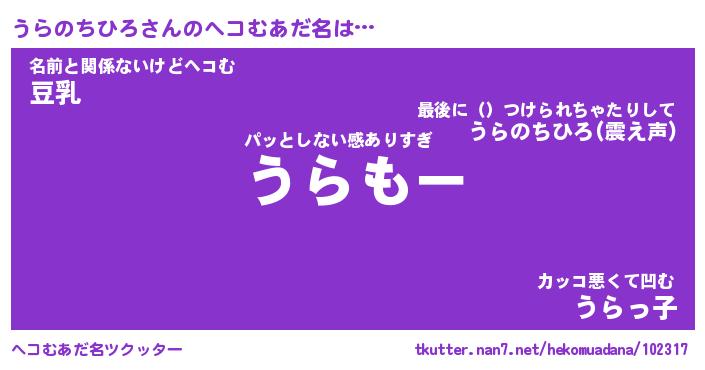 | ヒーロー風カッコイイあだ名 | 『スーパーウラノチヒロ』『銀牙騎士ウラ』 |