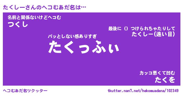 | ポケモン風あだ名 | 『タクチュウ』『タクシダネ』 |