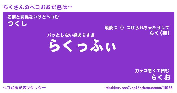 | ポケモン風あだ名 | 『ラクチュウ』『ラクダネ』『ヒラク』 |