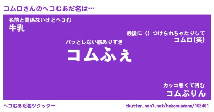 | 2回繰り返すあだ名 | 『コムコム』『ココムム』『ぬめぬめ』 |