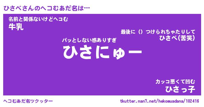 | 意味不明あだ名 | 『ペロリンひさべ』『ひさべフォーエバー』 |
