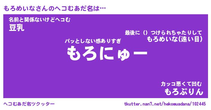 | 意味不明あだ名 | 『ペロリンもろめいな』 |