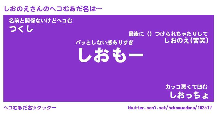 | 男性向けラノベタイトル風あだ名 | 『しおのえの憂鬱』 |