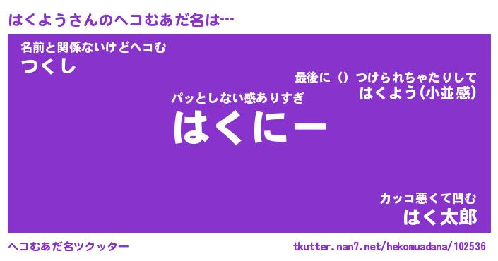 | ピコ太郎風あだ名 | 『ハコ次郎』『ピハ十郎』『ハク一郎』 |