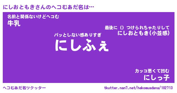 | 恥ずかしいあだ名 | 『プリティーにしおともき』『にしっちょ』 |