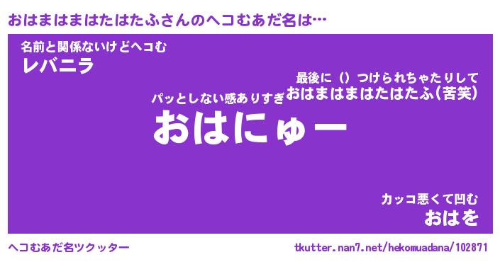 | 2回繰り返すあだ名 | 『おはおは』『おおはは』『おやおや』 |