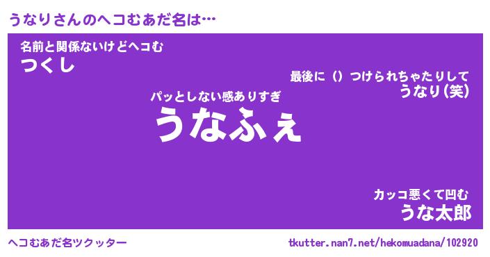 | ファンタジー風あだ名 | 『ウナフェル』『エターナルウナリー』 |