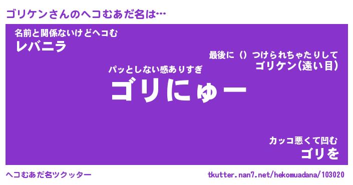 | 意味不明あだ名 | 『ペロリンゴリケン』『永久保存ゴリケン』 |