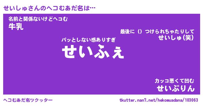 | ポケモン風あだ名 | 『セイチュウ』『セイシダネ』 |