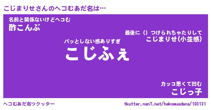 | 欧米人風あだ名 | 『マイケルこじまりせ』 |