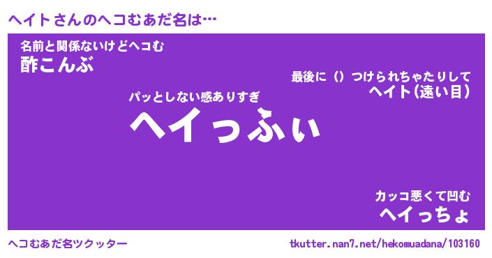 | ポケモン風あだ名 | 『ヘイチュウ』『ヘイトダネ』 |