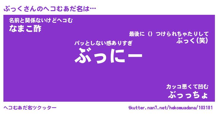 | ポケモン風あだ名 | 『ブッチュウ』『ブックダネ』 |