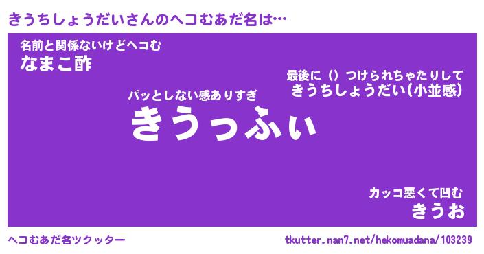 | ピコ太郎風あだ名 | 『キコ十郎』『ピキ次郎』『キウ太郎』 |