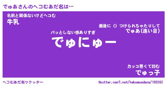 | 2回繰り返すあだ名 | 『でゅでゅ』『ででゅゅ』『おたおた』 |