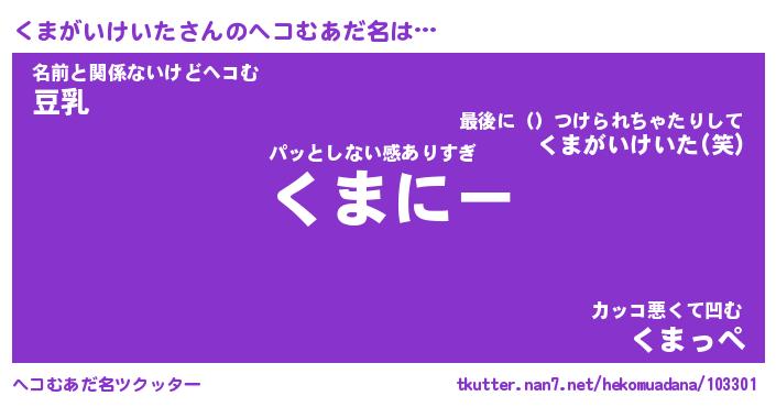 | ヒーロー風カッコイイあだ名 | 『スーパークマガイケイタ』 |