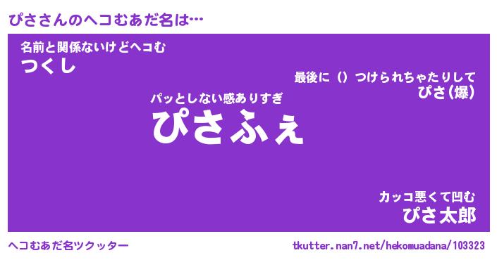 | ヒーロー風カッコイイあだ名 | 『スーパーピサ』『ウルトラぴさマン』 |