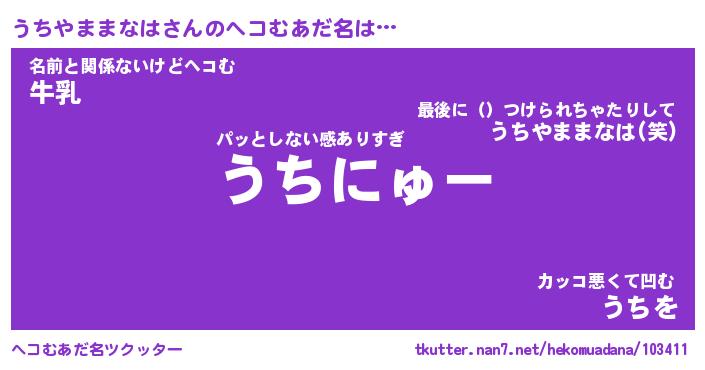 | 恥ずかしいあだ名 | 『プリティーうちやままなは』『うちちん』 |