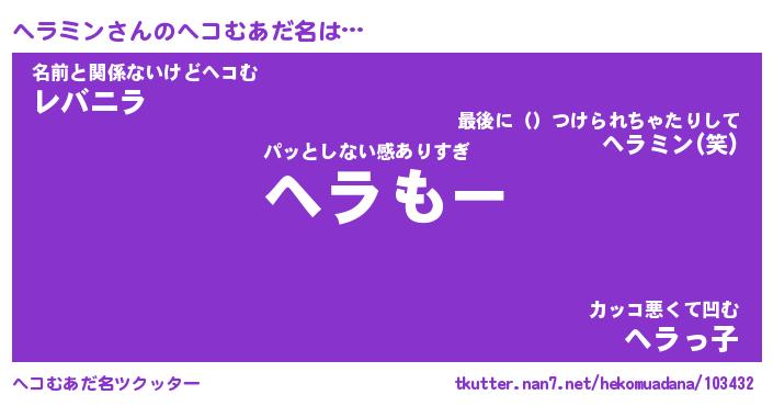 | ファンタジー風あだ名 | 『ヘラフェル』『エターナルヘラミンー』 |
