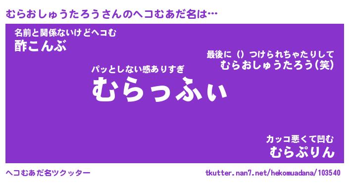| ヒーロー風カッコイイあだ名 | 『スーパームラオシュウタロウ』 |