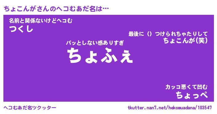 | 2回繰り返すあだ名 | 『ちょちょ』『ちちょょ』『ぷーぷー』 |