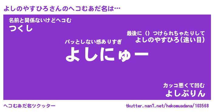 | ポケモン風あだ名 | 『ヨシチュウ』『ヨシノダネ』 |
