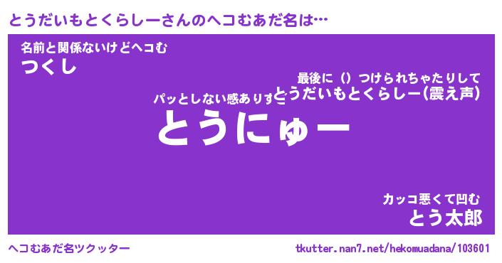 | ポケモン風あだ名 | 『トウチュウ』『トウダダネ』 |