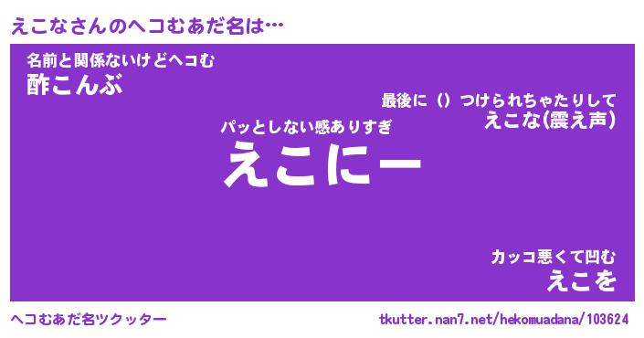 | 2回繰り返すあだ名 | 『えこえこ』『ええここ』『ぬらぬら』 |