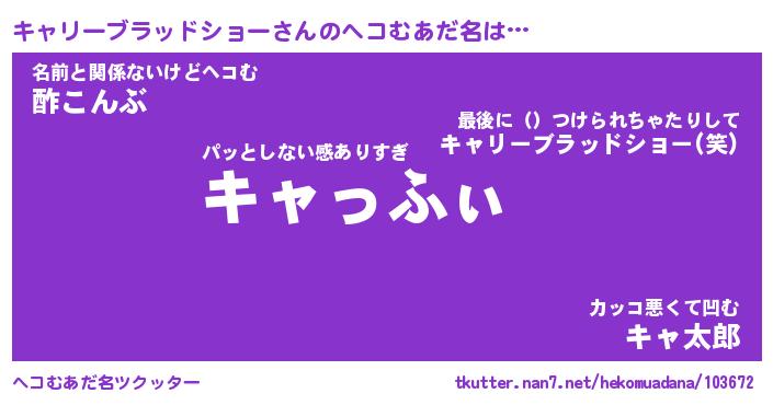 | 男性向けラノベタイトル風あだ名 | 『キャリーブラッドショーアートオンライン』 |