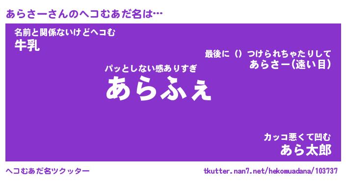 | 意味不明あだ名 | 『ペロリンあらさー』『永久保存あらさー』 |