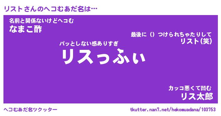 | 男性向けラノベタイトル風あだ名 | 『リストの憂鬱』 |