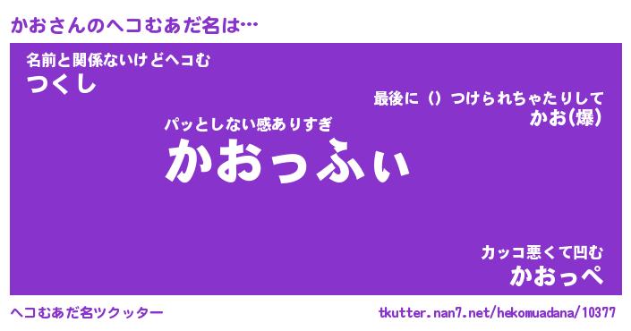 | 男性向けラノベタイトル風あだ名 | 『かおの憂鬱』『ノーゲーム・ノーカオ』 |