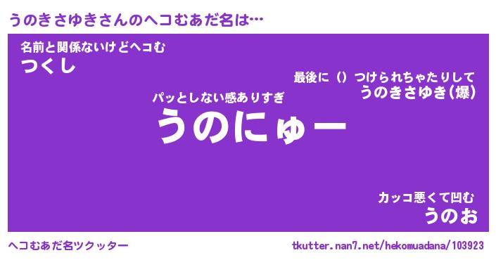 | 男性向けラノベタイトル風あだ名 | 『うのきさゆきの憂鬱』 |