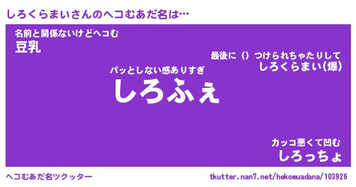 | 男性向けラノベタイトル風あだ名 | 『しろくらまいの憂鬱』 |