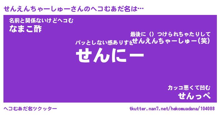 | ヒーロー風カッコイイあだ名 | 『スーパーセンエンチャーシュー』 |