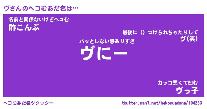 | 2回繰り返すあだ名 | 『ヴヴ』『ヴヴ』『ぬめぬめ』 |