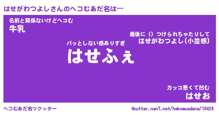 | ファンタジー風あだ名 | 『ハセフェル』『ファントムハセス』 |