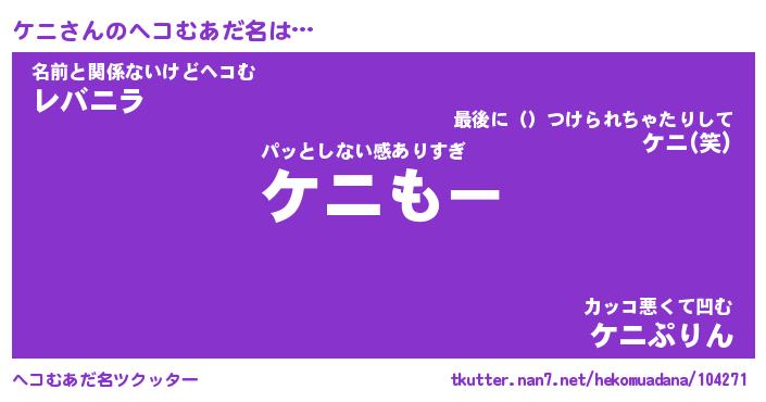 | ポケモン風あだ名 | 『ケニチュウ』『ケニダネ』『ヒケニ』 |