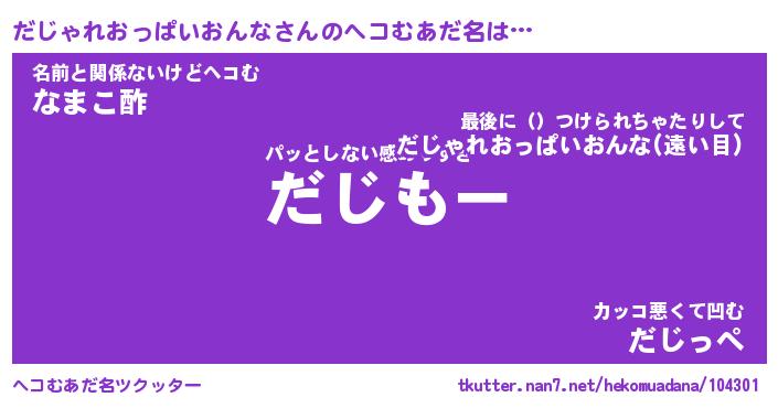 | 料理風あだ名 | 『ネギたっぷりだじゃれおっぱいおんなの南蛮漬け』 |