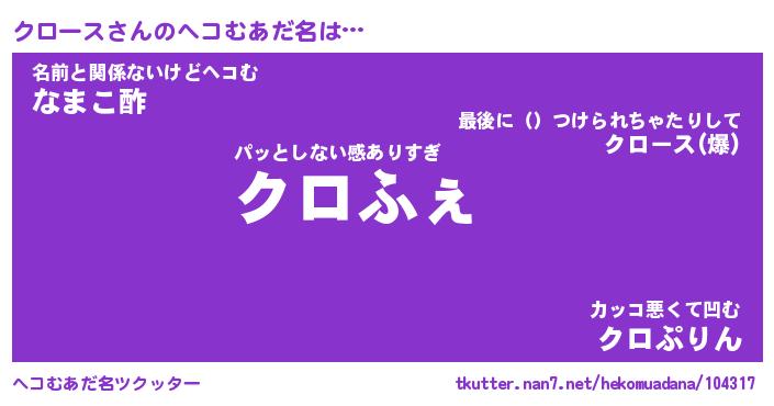 | 2回繰り返すあだ名 | 『クロクロ』『ククロロ』『ねとねと』 |