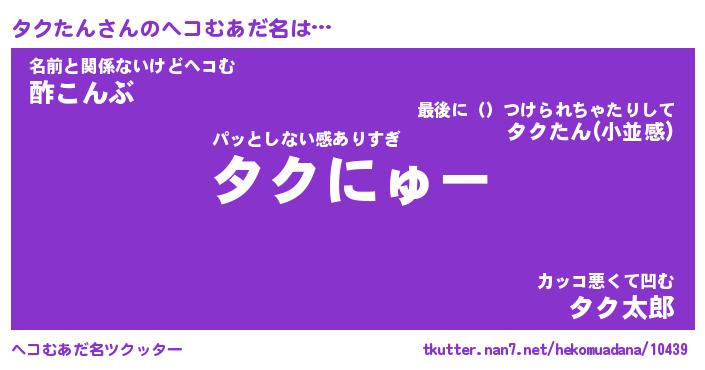 | 意味不明あだ名 | 『ペロリンタクたん』『永久保存タクたん』 |