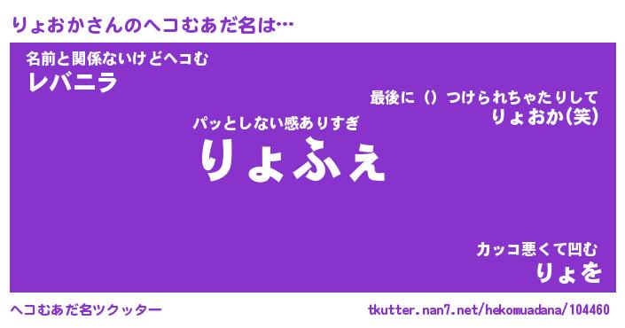 | ファンタジー風あだ名 | 『リョフェル』『エターナルリョオカー』 |