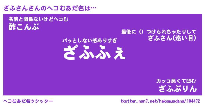 | 意味不明あだ名 | 『ペロリンざふさん』『永久保存ざふさん』 |