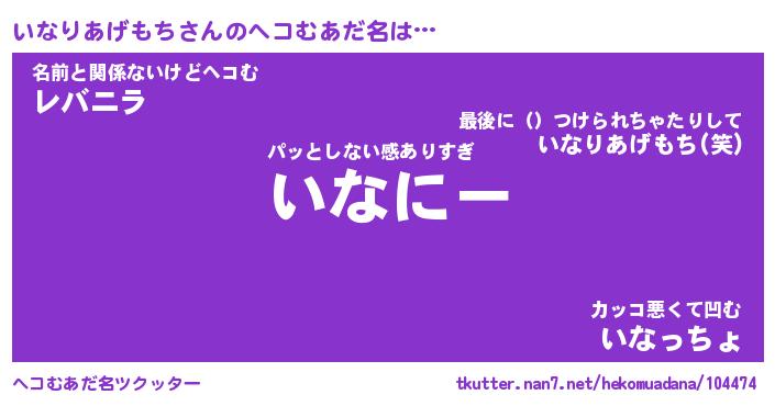 | 胡散臭い通販商品みたいなあだ名 | 『億万長者になれるブレスレット…その名も「いなりあげもち」』 |