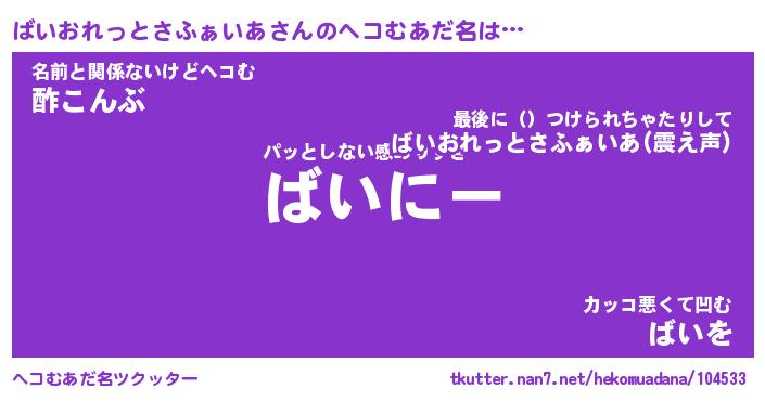 | 意味不明あだ名 | 『ペロリンばいおれっとさふぁいあ』 |