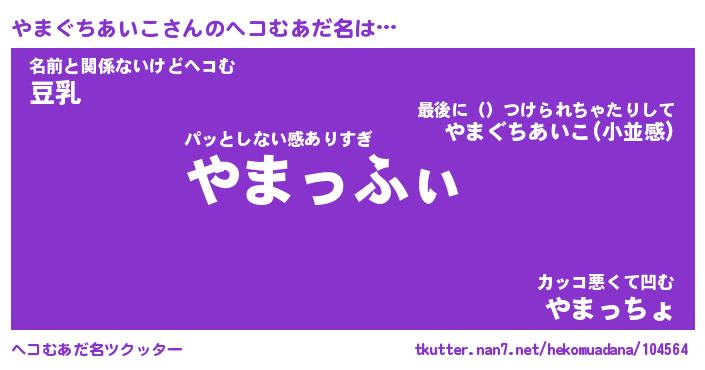 | 伝説のあだ名 | 『伝説のスナイパーやまぐちあいこ』 |