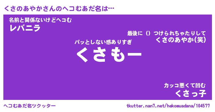 | 伝説のあだ名 | 『封印されしスナイパーくさのあやか』 |
