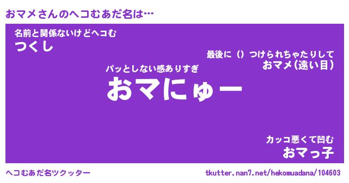 | ヒーロー風カッコイイあだ名 | 『スーパーオマメ』『ウルトラおマメマン』 |